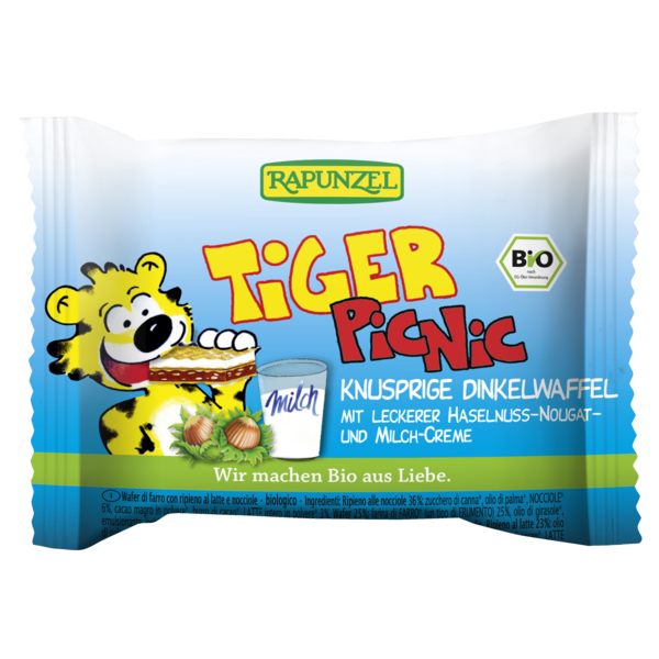 crème de noisettes* (36,00%) (sucre de canne*, huile de palme*, NOISETTES*(6,00%), cacao en poudre* fortement dégraissé, beurre de cacao*, LAIT entier* en poudre(3,00%)), gaufre* (25,00%) (farine D'ÉPEAUTRE* (un type de BLÉ)(25,00%), huile de tournesol*, émulsifiant lécithine de tournesol*, sel de mer, antiagglomérant carbonate de magnésium, poudre à lever bicarbonate de sodium), crème de lait* (23,00%) (huile de palme*, sucre de canne*, LAIT entier* en poudre(4,00%), beurre de cacao*, vanille Bourbon*), chocolat* (sucre de canne*, beurre de cacao*, LAIT entier* en poudre(3,00%), pâte de cacao*)