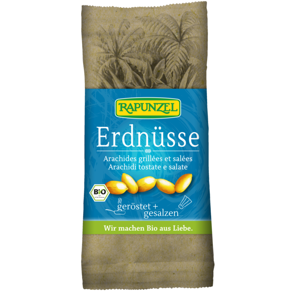Le plaisir d'une petite collation croquante. Les arachides sont délicatement grillées à l'air chaud provenant principalement d'énergies renouvelables. Elles libèrent ainsi tout leur arôme et sont merveilleusement croquantes. Elles sont ensuite délicatement salées et aussitôt emballées par Rapunzel.