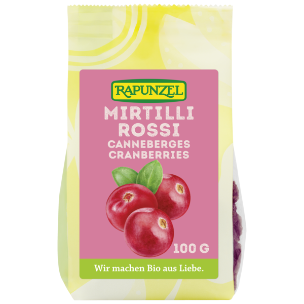 Les canneberges séchées ont un agréable goût acidulé et fruité. Les canneberges séchées Rapunzel proviennent de cultures traditionnelles au Canada. Elles sont cuites avec du jus de pomme concentré pour atténuer leur saveur très acide. La note agréablement fruitée et légèrement âpre prend ainsi le dessus.