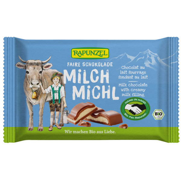 Chocolat au lait avec fourrage subtil au lait. Plaît à tous, pas seulement aux enfants. Ce chocolat est issu du programme HAND IN HAND de Rapunzel qui allie écologie et commerce équitable. Avec les matières premières de qualité, le conchage intensif est le véritable secret de ce délicieux chocolat. Grâce au conchage, les riches arômes cacaotés se libèrent petit à petit jusqu'à leur plein épanouissement. Et toute la subtilité et le fondant incomparable du chocolat se dévoilent.