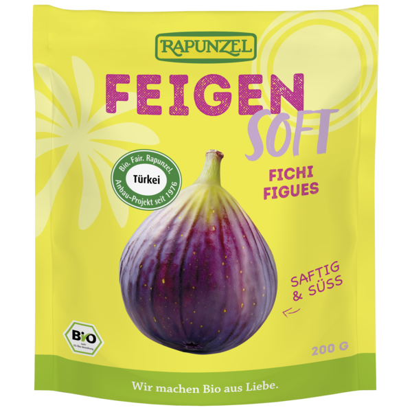 Figues juteuses, sucrées et particulièrement aromatiques issues du projet Turquie de Rapunzel. Ces fruits gorgés de soleil proviennent des coteaux de la région d'Aydin et sont cultivés et récoltés avec beaucoup d'attention par les agriculteurs du projet. Les figues sont traitées doucement à la vapeur d'eau. Elles sont ainsi plus juteuses et fruitées que les fruits séchés au soleil.
