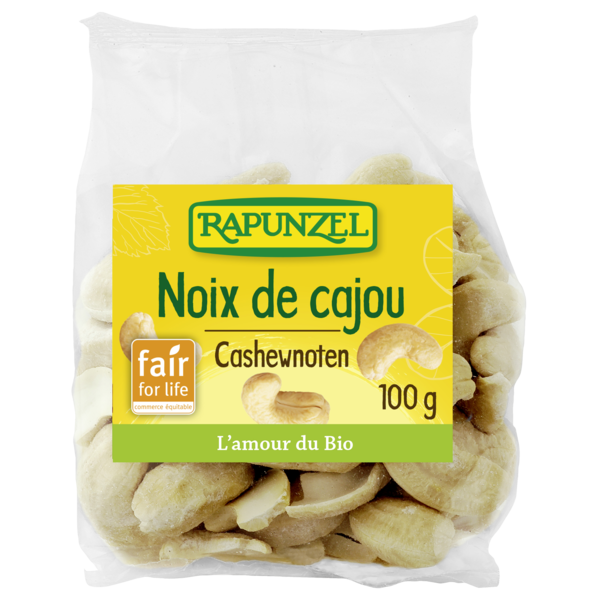 Les noix de cajou sont issues du commerce équitable contrôlé selon le référentiel Fair for Life et proviennent de Côte d'Ivoire.