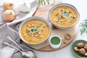 Soupe patates douce châtaignes et huile verte